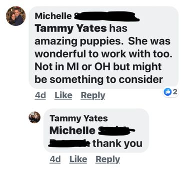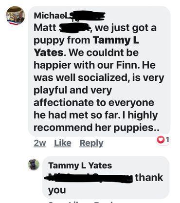 Once I have puppies born, I do ask for deposits and then i start do biweekly pics. I also do will videos when i can .